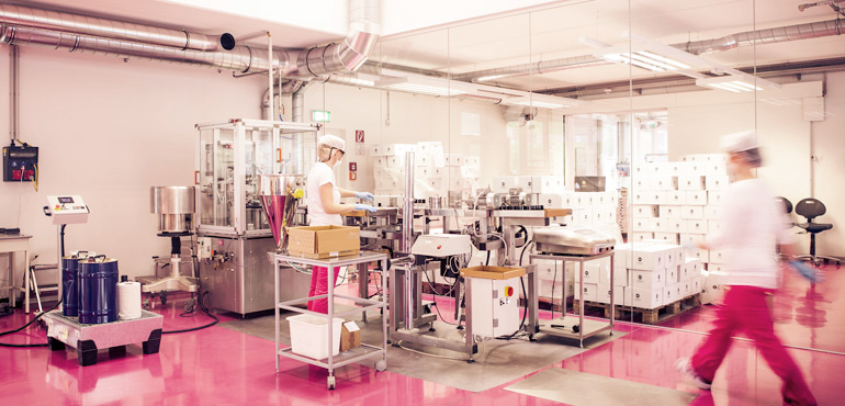 Modernste, computergesteuerte Produktionsanlagen und gewissenhafteste Mitarbeiter garantieren konstante Qualität auf höchstem Niveau. Wir garantieren maximale Qualität in Abfüllung, Konfektionierung, Lagerung und Logistik von uns produzierter Kosmetikartikel. Unsere Maschinen erledigen aber nur die Hälfte der Arbeit, die übrigen Schritte liegen in unserer Hand. Die Produktpalette ist dabei so vielfältig, wie Wirkstoffkombinationen selbst. Sorgfalt zahlt sich eben aus.